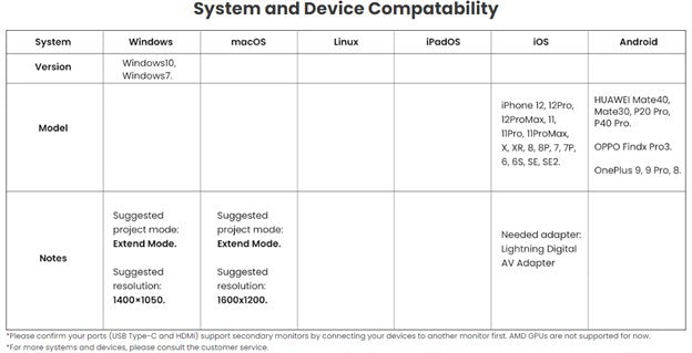 • A USB Type-C port, a mini-HDMI, and HDMI and a DP port give you the flexibility to connect Mira Pro to your base unit and peripherals. Mira Pro can also be used as a secondary monitor compatible with various systems and devices (see system and device compatibility listed in the specifications below)