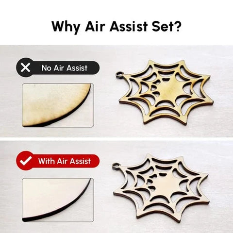The air assist kit again helps with surface finish of the part by clearing fumes and waste material whilst the machine is running.