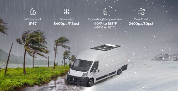 You need just 2 of Renogy’s 320W Solar panels as against 6 of any 100W regular panels which means Renogy adds to the aesthetic of your original rooftop design.
