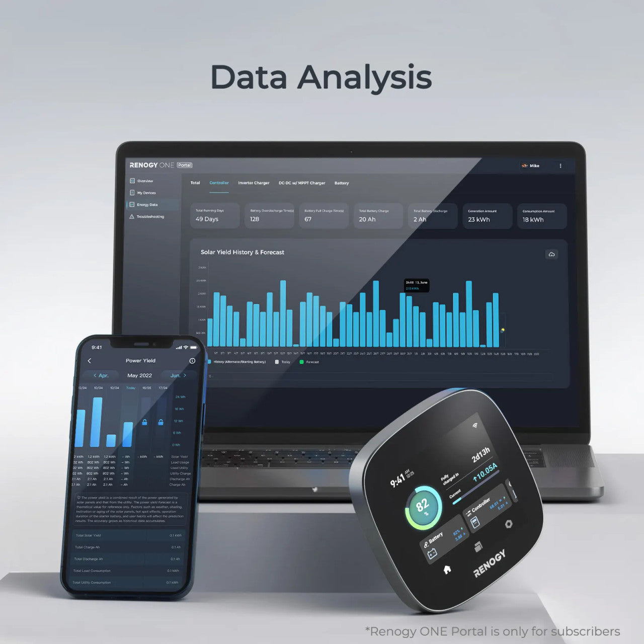 Renogy brings your way the penultimate kit to achieve your solar energy goals, a 800W 12V/24V monocrystalline solar kit that includes Rover 60A charge controller and Renogy ONE core, a comprehensive package that empowers you with sustainable energy of 3.5-4kWh of electricity per day and smart energy monitoring with intuitive visuals and real-time data.