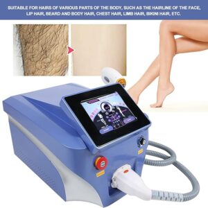 The 808nm laser hair removal feature employs a specially designed multi-pulse laser to heat the hair follicle to 48°C in a lower energy desire mode. By sliding the treatment tool at a rate of 10Hz, the stem cells lose their growth ability, resulting in permanent hair removal. The machine offers versatility with multiple lasers: 755nm for fair skin (fine/blonde hair) hair removal, 808nm for yellow skin, and 1064nm for dark skin (black hair) hair removal.