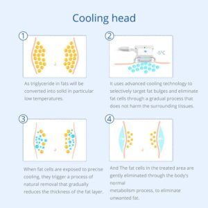 Introducing our groundbreaking fat reduction system featuring advanced cooling technology. This innovative device selectively targets stubborn fat bulges, gradually eliminating fat cells without harming surrounding tissues. The precise cooling process initiates a natural removal mechanism, reducing the fat layer thickness over time. Additionally, our system utilizes a sophisticated 40kHz focused ultrasound cavitation effect to rapidly break down fat cells, facilitating their metabolization through increased water intake and promoting the production of fatty acids. Pure RF energy is employed for skin laxity treatment and facial tightening, ensuring exceptional results. With a bilingual display, adjustable cooling settings, and no side effects, our system surpasses traditional liposuction methods. Achieve long-lasting effects after just a few treatment courses, experiencing a safe, efficient, and enduring solution for all skin types, setting a new standard in non-invasive body sculpting.