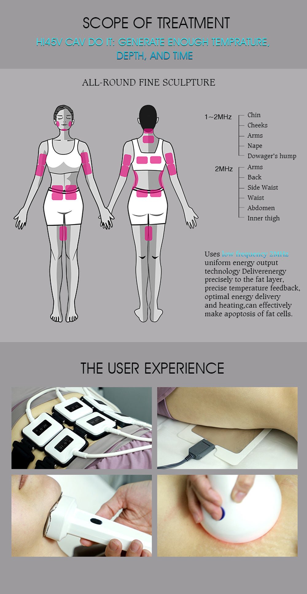 This versatile device effortlessly rejuvenates both facial and body features with its advanced functionalities. Equipped with three handles designed for specific needs – a facial handle utilizing RF technology for sculpting and lifting, a spiral-shaped body handle, and six square-shaped body pads for meticulous contouring. Scientifically validated for fat reduction, the machine raises temperatures to 45°C, diminishing fat cell survival by 60% and delivering an impressive average fat reduction of 24-27%. Clients immediately witness enhanced skin tightening, lifting, and reduced double chins as heat regenerates collagen and repairs connective tissue.