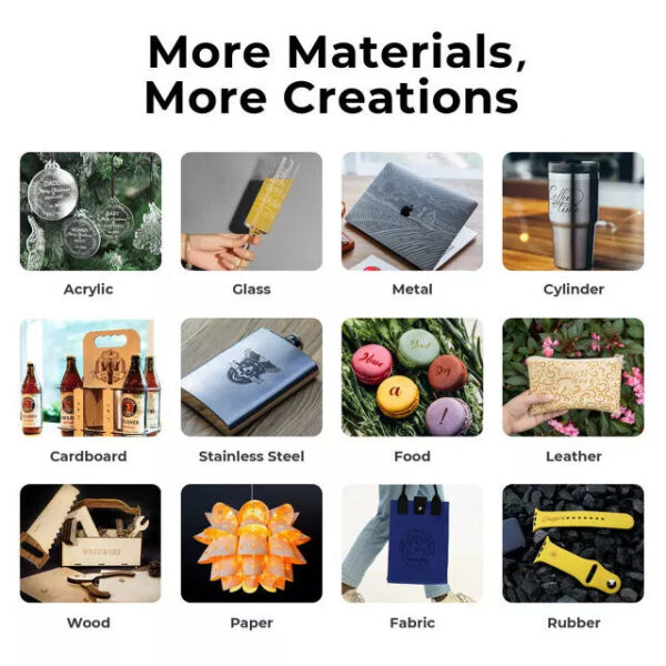 Use additional risers (sold separately) to increase the height of xTool D1 to facilitate the engraving of higher objects(use 2 sets to increase height to 140mm). Customize your skateboard or basketball to make them cooler.