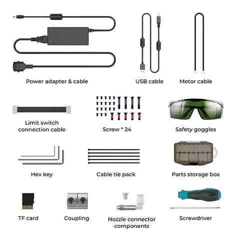 Modeles xTool D1 – 10W Machine Power 60W Laser Electric Power 40W Laser Module Output Power 10W Laser Spot 0.08 mm Wavelength 450 – 460 nm Routing Speed 160 mm/s Working Area 432 * 406 mm (17 * 16 inch) Max. Workpiece Height 50 mm Voltage Input 100-240V 50-60HZ Voltage Output 12V 7A 84W Connecting Interfaces USB/Wi-Fi Certification FCC/FDA Operating Systems Windows/macOS/Android/iOS Control Software Laserbox Software/ Laserbox App File Type(s) SVG/DXF/JPG/JPEG/PNG/BMP/TIF/CR2, etc. Product Weight 5 kg/11.02 lb Package Weight 6 kg/13.23 lb Product Size (L * W * H) 600*590*150 mm/23.62*23.23*5.91 in Package Size (L * W * H) 620*345*130 mm/24.41*13.58*5.12 in